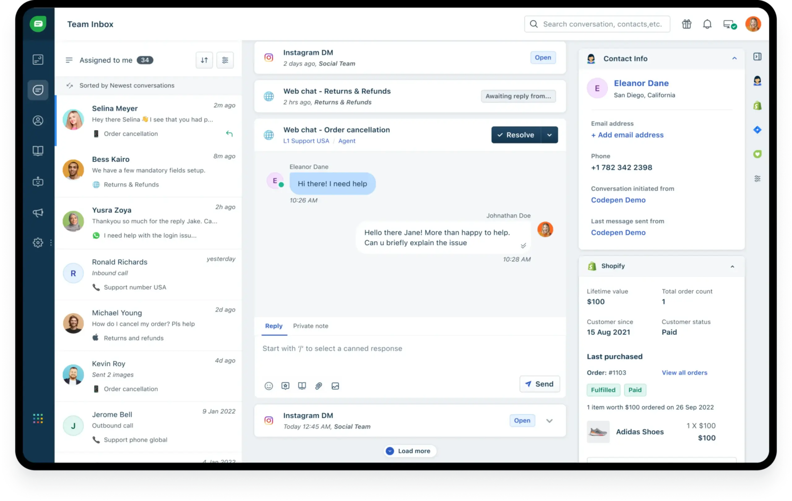 Give your agents the context they need to deliver personalized experiences. Make it easy for them to see details like past purchases and open issues, conversations from any channel, and more.