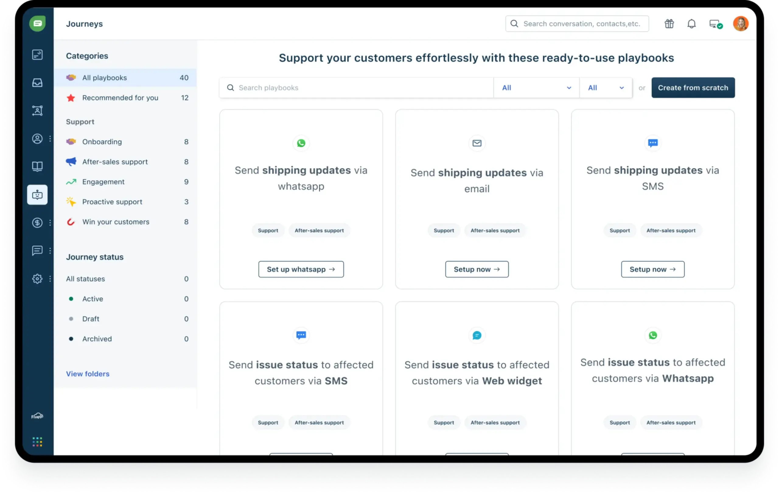 Serve up smiles on any channel with Freshchat—and upgrade to Freshdesk Omni for advanced ticketing, knowledge bases, and more: the all-in-one toolkit for five-star support.