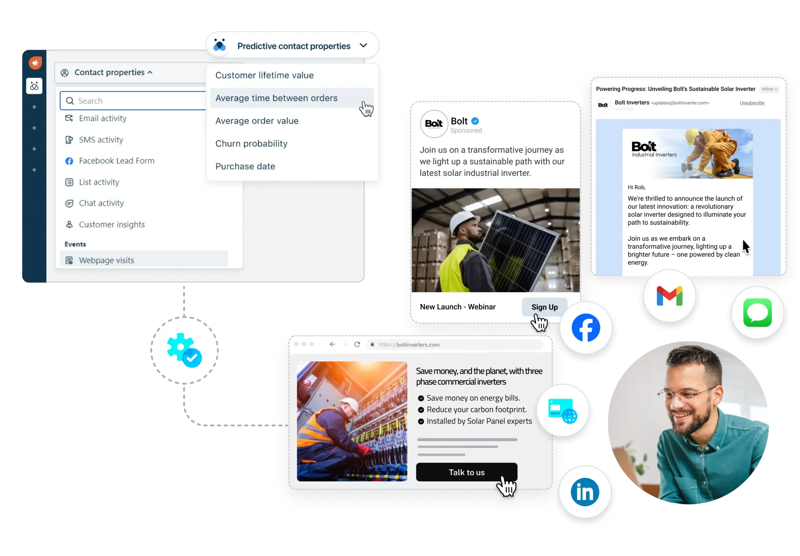 Get a unified view of customer interactions with your website, past campaigns, and sales teams. Use AI-driven lead scoring and predictive segmentation to run personalized campaigns that drive more opens, clicks, and conversions.