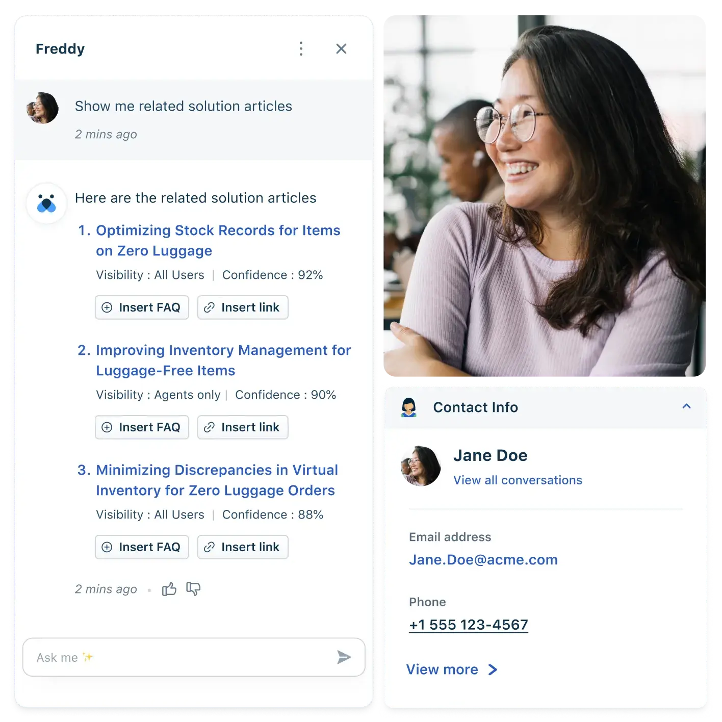 Deliver seamless, unified support experiences across every channel—email, chat, voice, social, and more. With Freshdesk, your agents gain a single, 360° view of every customer, enabling fast, contextual, and personalized responses. Empower your team with automation, AI, and self-service tools that boost efficiency and customer satisfaction.